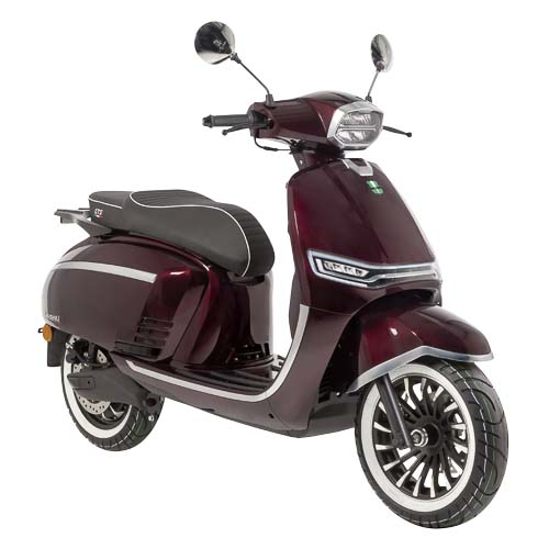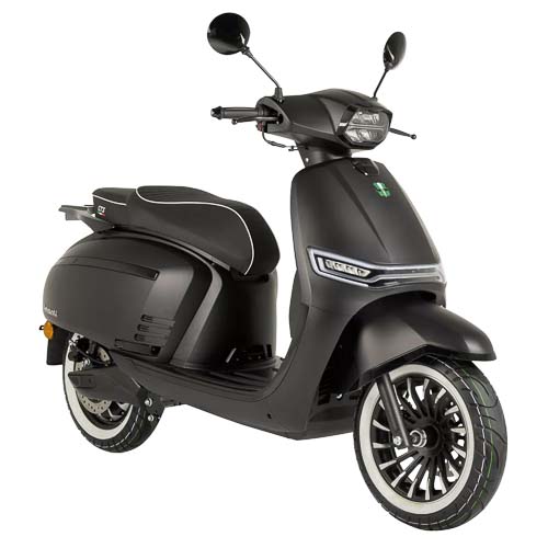 Leverbaar in de kleuren: Mat Corris Grey, Midnight Red, Borasco Grey, Carbon Black. De kleuren Midnight Red en Carbon Black worden geleverd met klassieke white wall banden. Deze scooter is leverbaar als 25 km en 45 km variant.